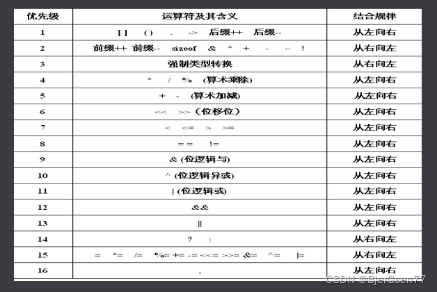 运算符优先级:
