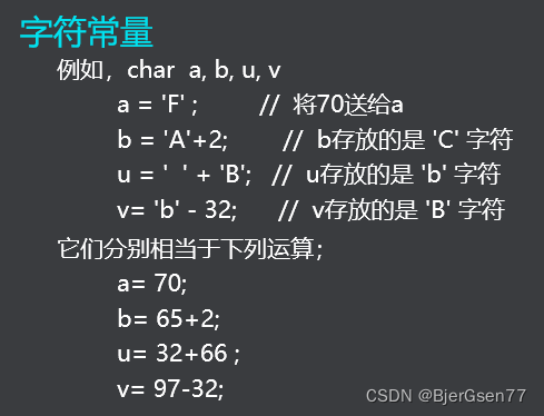 字符常量是指一个单一字符, 其表示形式是由两个单引号包括的一个字符。例如A’, ‘a’。字符常量具有数值。字符常量的值就是该字符的ASCII码值。可以把字符常量看做一个字节的正整数。