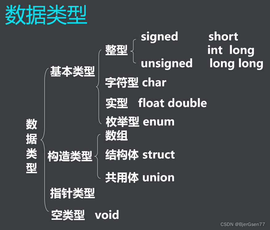 整数类型。包括char, short, int和long。