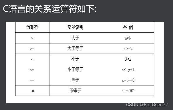 关系运算符: