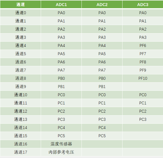 PA0~PA7、PB0、PB1这10个引脚是ADC的10个通道