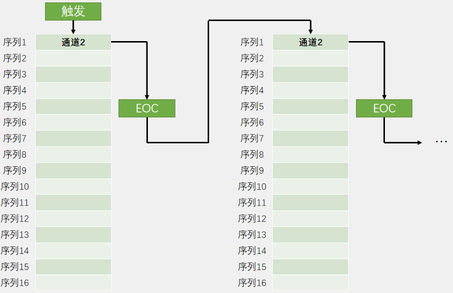 非扫描模式,菜单列表还是只用第一个,与单次转换不同的是,它在一次转换结束之后不会停止,而是立刻开始下一轮的转换,然后一直持续下去。