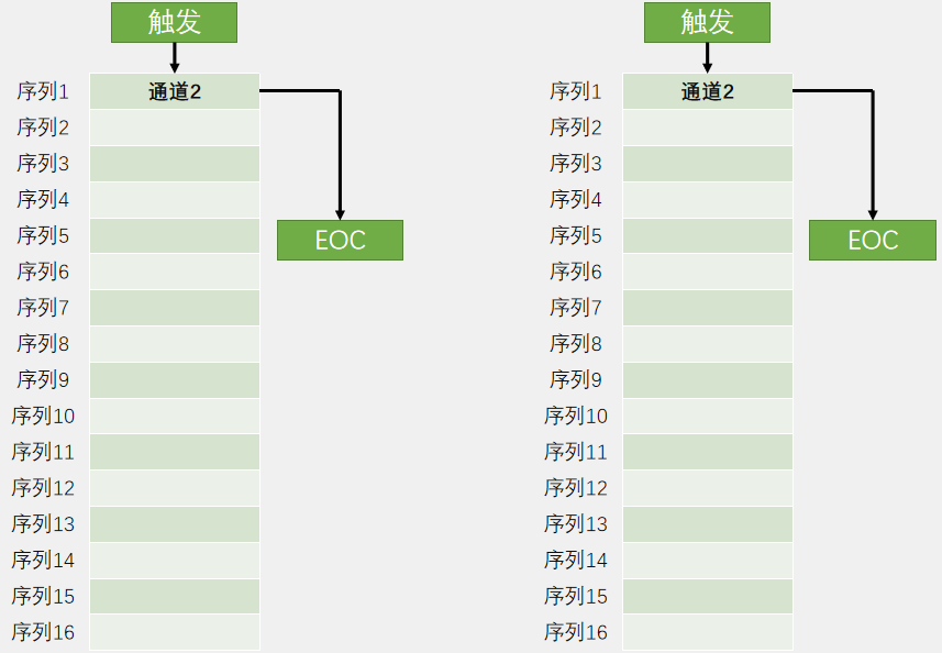 在非扫描的模式下,只有第一个序列1的位置有效,同时选中一组的方式就退化为简单地选中一个的方式。转换完成结果存放在数据寄存器中,EOC标志位置1。