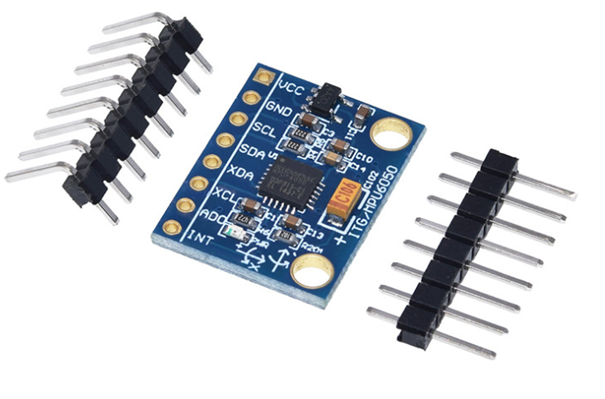 MPU-6050包含6个16位ADC, 3个用于陀螺仪输出, 3个用于加速度计输出. 用户可以设置的陀螺仪满量程范围为±250,±500,±1000,±2000°/秒(dps), 可设置的加速度计满量程范围为±2g, ±4g, ±8g和±16g. 通信使用 400kHz的 I2C接口或 1MHz的 SPI接口(SPI仅MPU-6000可用).
