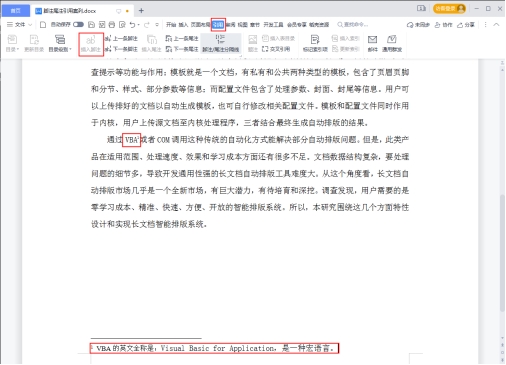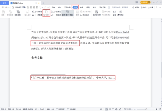 脚注一般显示在当前页面的底部,其目的是对当前页面的某处内容进行解释说明,如对文档中某些难以理解词语的补充注解,标明资料来源等;尾注一般显示在整篇文档的末尾,用于说明引用文献的出处,例如在撰写论文时,文档最后的参考文献就属于尾注。脚注与尾注可通过一条分隔线与正文进行区分。