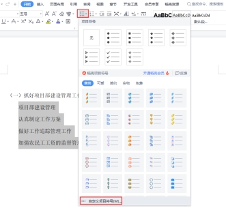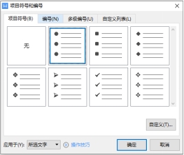 WPS文字内置的项目符号和编号样式有限,如果在内置的样式中没有适用的项目符号和编号,用户可以通过自定义项目符号与编号来满足个性化的需求。