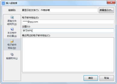 将光标定位到需要创建超链接的位置,打开【插入超链接】对话框,在对话框左侧【链接到】工作栏中单击【电子邮件地址】命令,在右侧“电子邮件地址”中输入邮件地址,在“主题”中输入邮件主题,在对话框上方“要显示的文字”中输入文档中显示的文本内容,设置完成后,单击【确定】按钮即可,如图2-192所示。