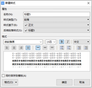 以新建一个名称为“标题5”,字体为“微软雅黑”,字号为“小四”,字形加粗,对齐方式为“两端对齐”的样式为例,介绍新建样式的方法: