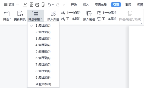 设置自定义多级编号之前,可先使用【引用】选项卡下的【目录级别】按钮,对文本内容的级别进行设置,然后再给文本添加多级编号。