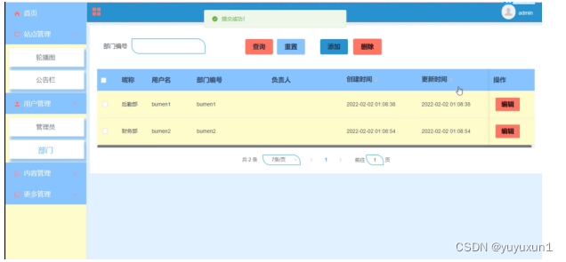 部门动态管理关键代码如下所示。