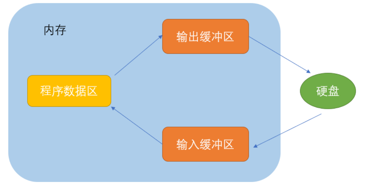 从内存向磁盘输出数据会先送到内存中的缓冲区,装满缓冲区后才一起送到磁盘上。
