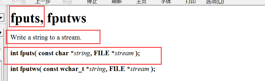 它的第一个参数是一个字符串的指针,第二个表示输入到哪个流里面。返回值是字符个数
