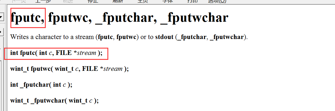 其第一个参数为其要输出的字符,第二个参数为流参数(比如文件输出流、标准输出流)
