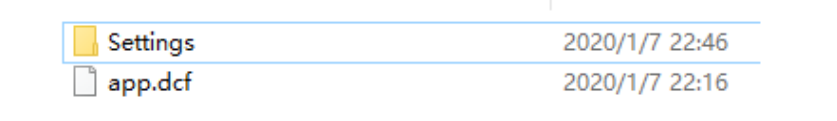 如下 : 发出的 dcf 文件包一般包含以下两个文件 (app.dcf 和 Settings 文件夹 )
