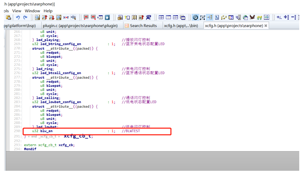 重新编译后,发现 xcfg.h 中自动生成了 xcfg_cb.blw_en
