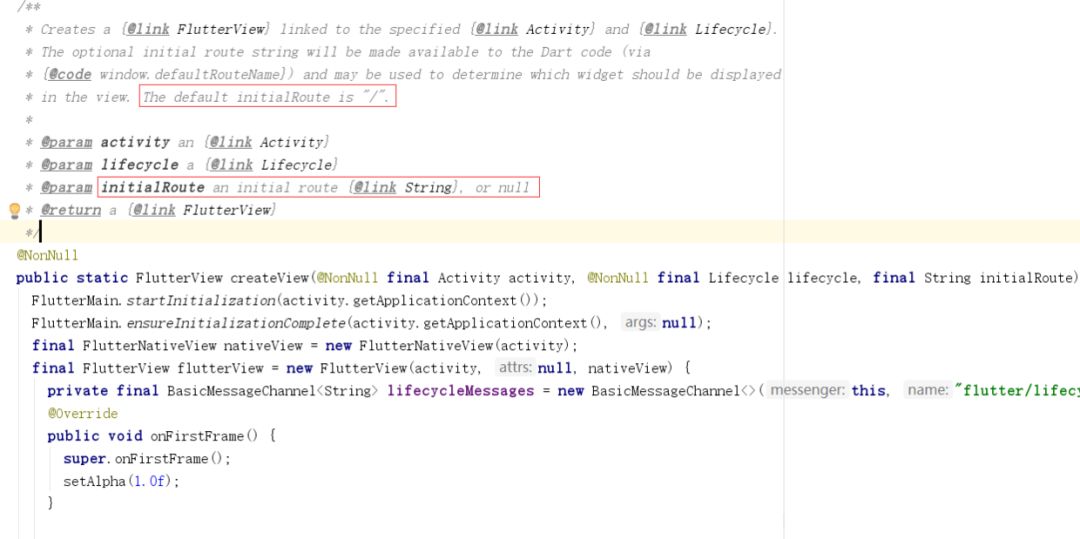 我们在 MainActivity 加载 FlutterView 时,有传入一个参数 “route1”。