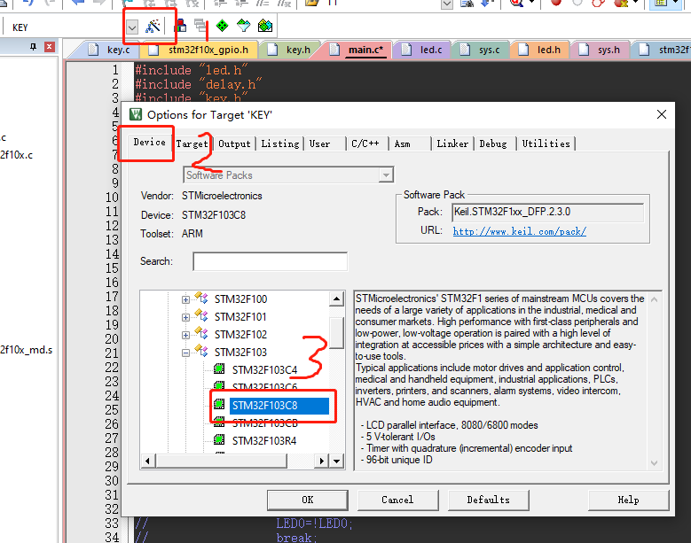 2、选择DEVICE,换成C8T6