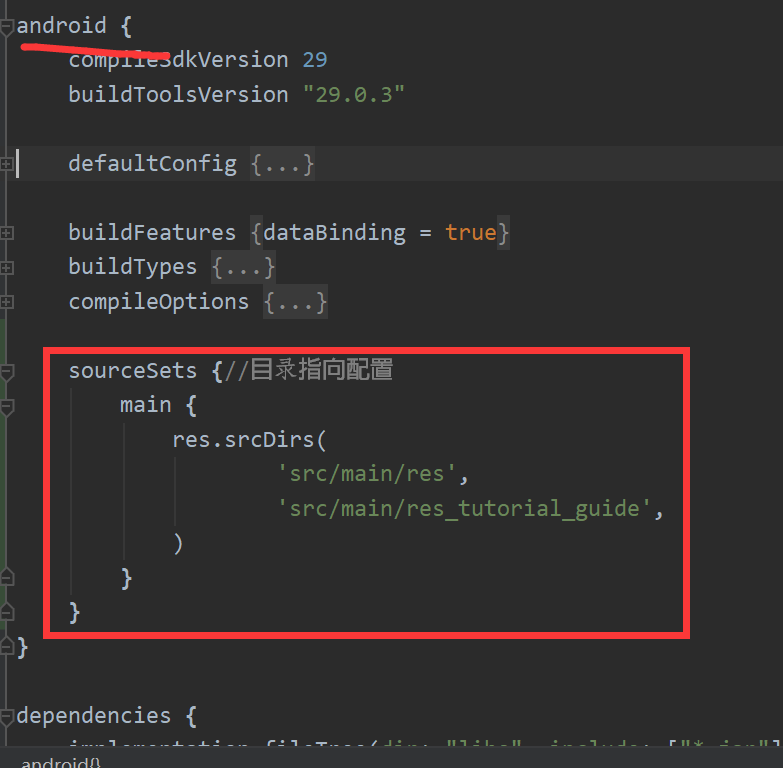 4.最重要的一步:命名完以后要到(moudle)build.gradle,里面配置资源路径