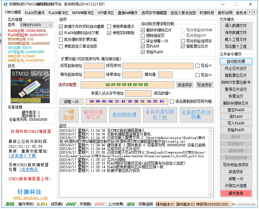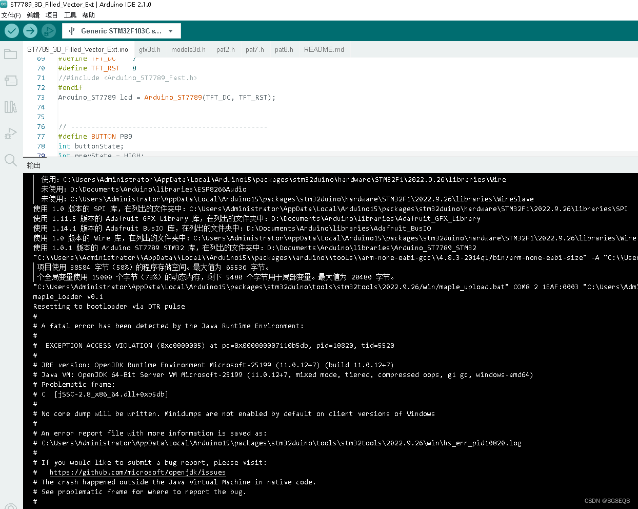 突然想起换个IDE版本试一下,我电脑有现成的1.8.19,把"STM32 Arduino IDE"开发板文件夹直接复制到1.8.19硬件文件夹内,打开同样的代码编译一次烧录成功。