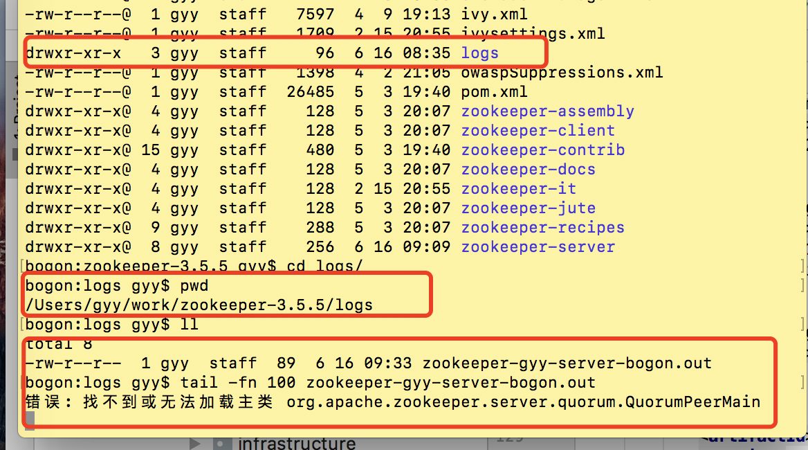 6、那,OK,去看下zk日志,日志好像也说的很明白,找不到那个类org.apache.zookeeper.server.quorum.QuorumPeerMain
