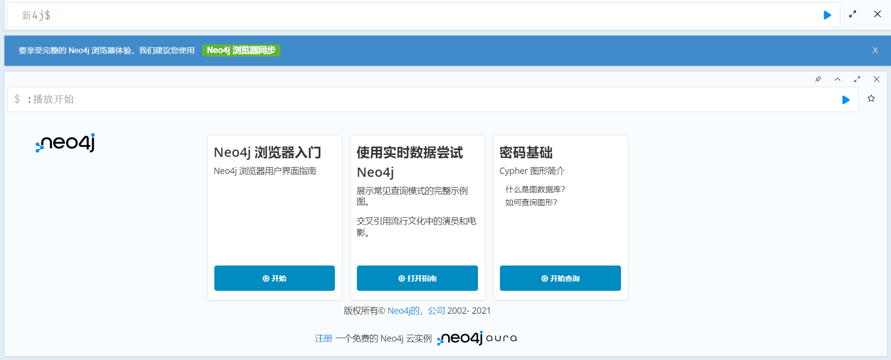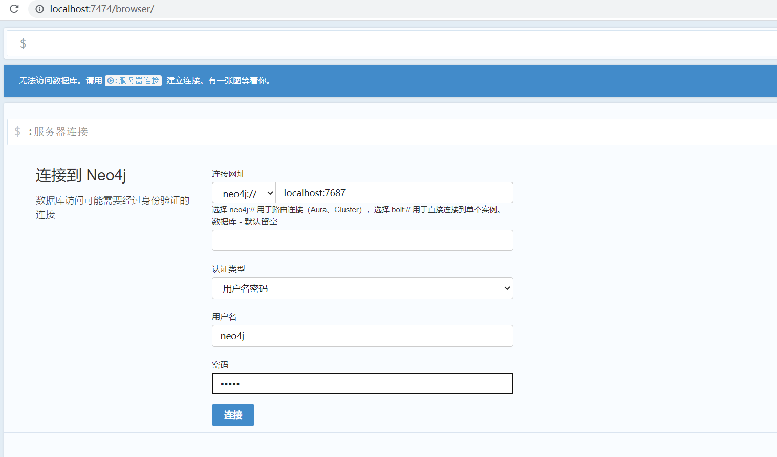 (3)浏览器访问http://localhost:7474;用户名和密码默认均为neo4j;