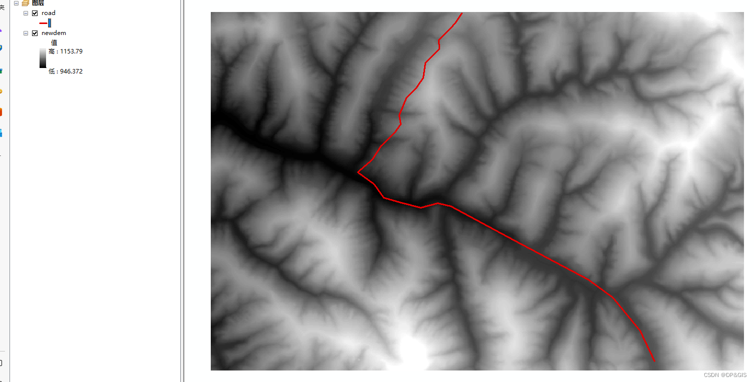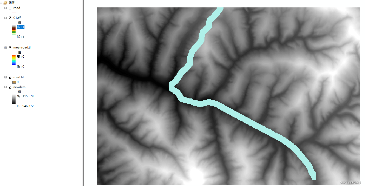 4、meanroad要素加1,再乘原始dem,得到道路的dem