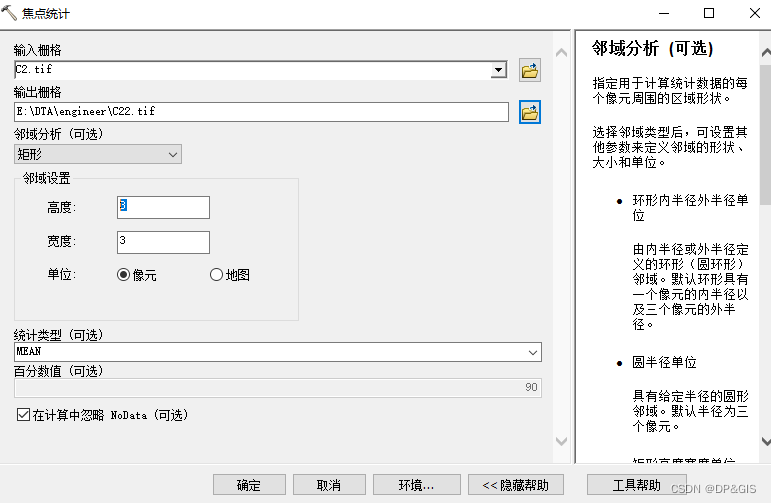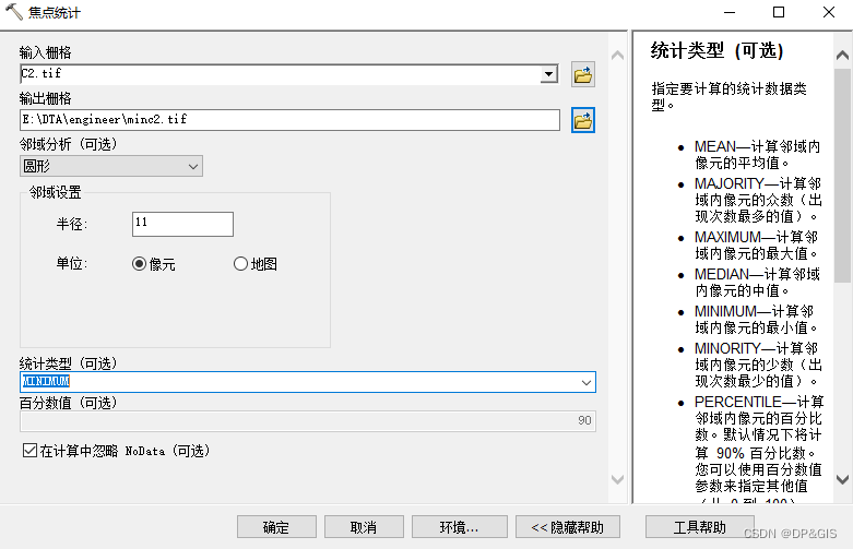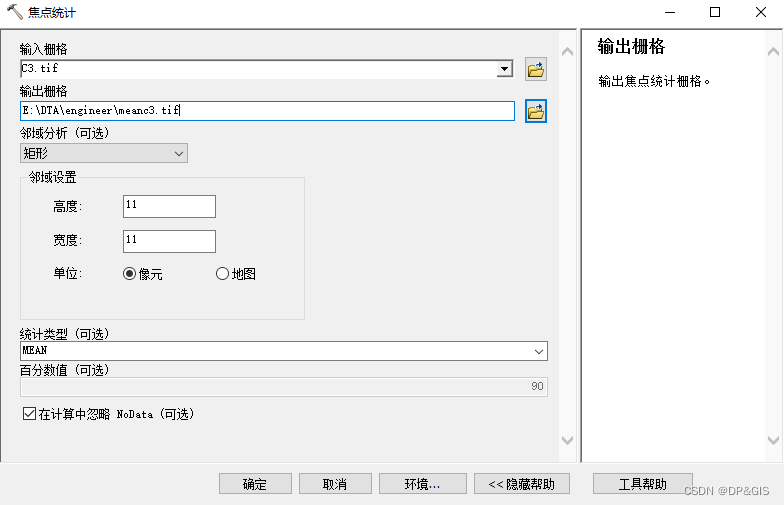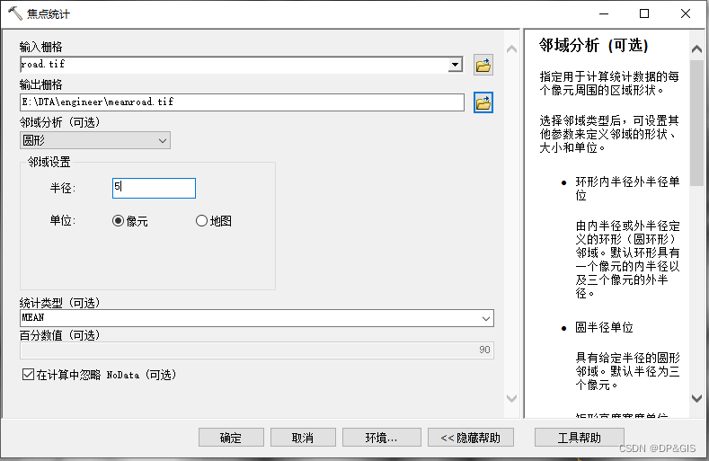 3、焦点统计,5×5窗口扩大道路范围,即为道路范围