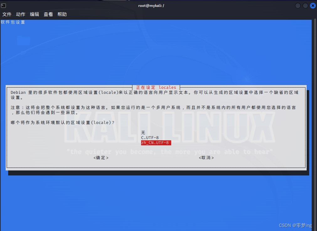 4.选中zh_CN.UTF-8,回车确定,然后重启