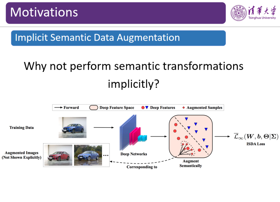 在黄高副教授的报告《图像数据的语义层扩增方法》中,他则是选择了对数据做加法,在「深度特征插值」技术的启发下,开发了一套隐式语义增强方法,实现了自动、多样化的数据扩增。