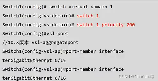 两台交换机的domain ID相同,才能组成VSU,取值范围是1到255 (缺省100)。