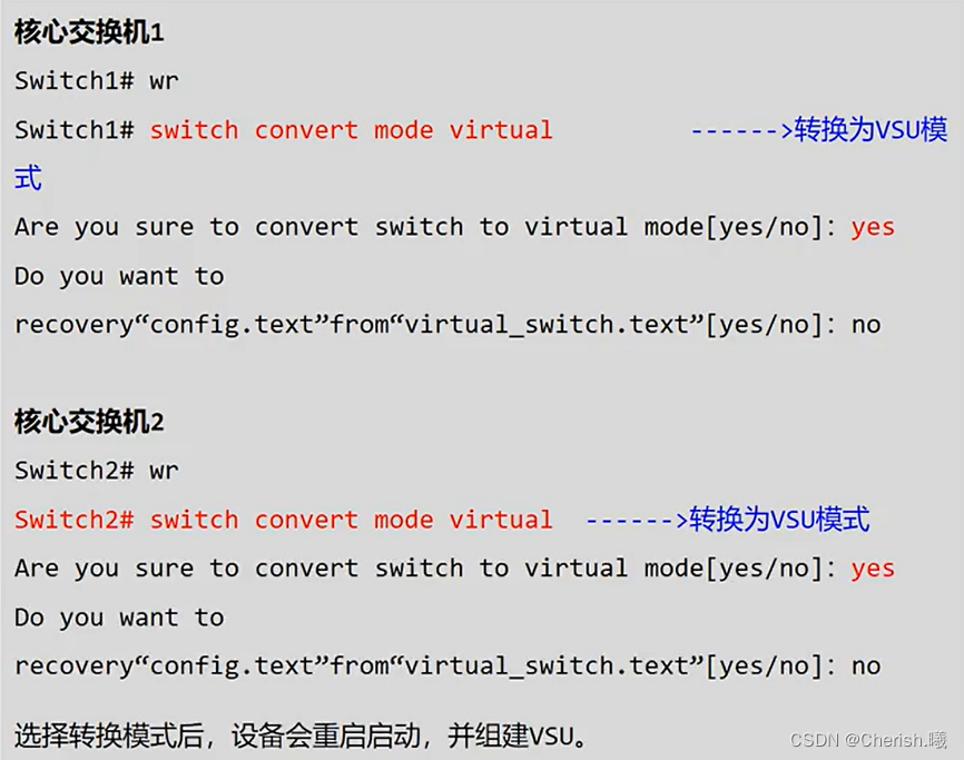 组建VSU,必须把交换机的工作模式从单机模式切换到VSU模式。
