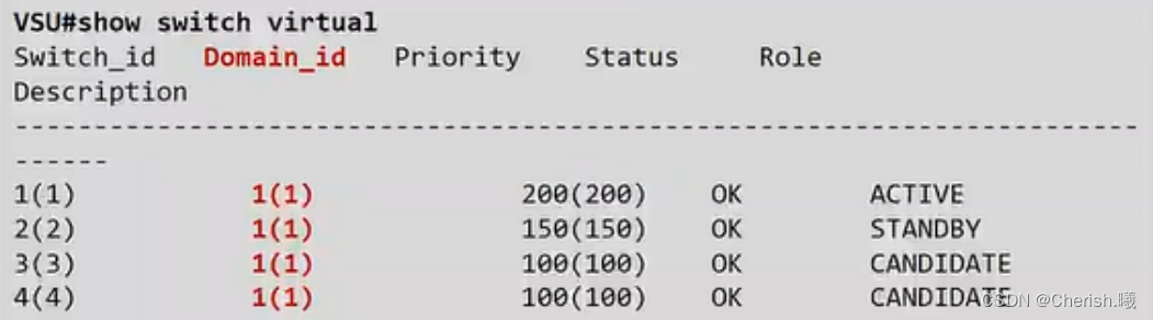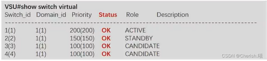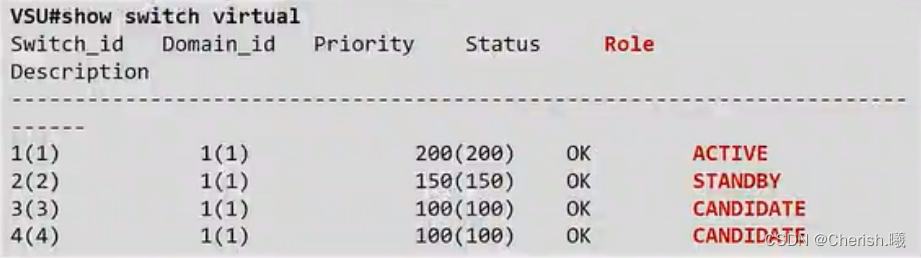 Active主设备(有且仅有一个):管理整个VSU,负责同步配置、时间等到所有成员设备。