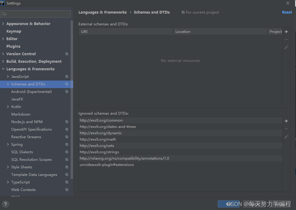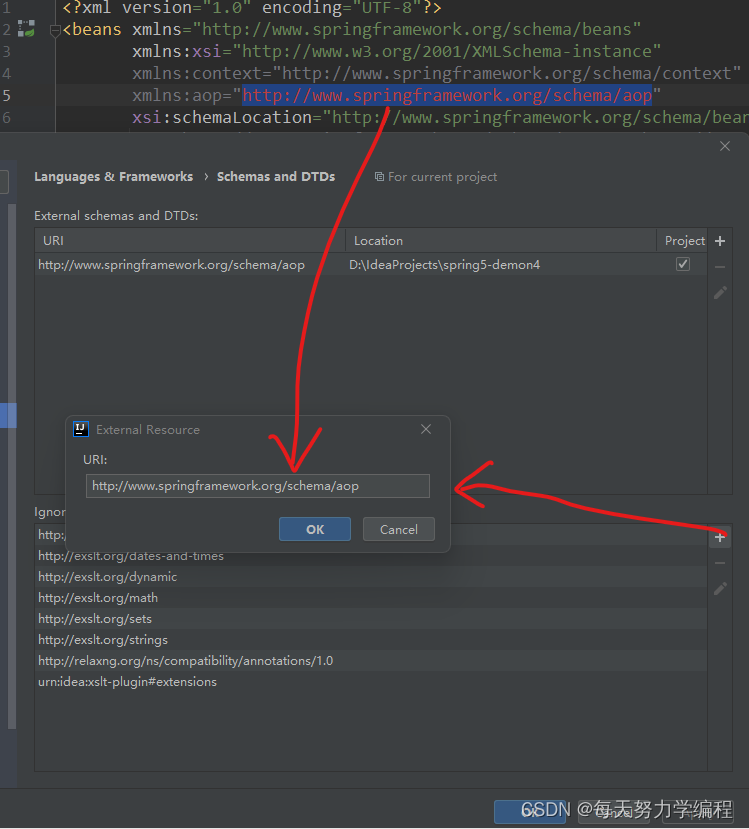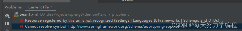 File-->settings...-->languages & frameworks-->在Schemas and DTDs中按+号:将把报错的URL复制添加进去就行了。