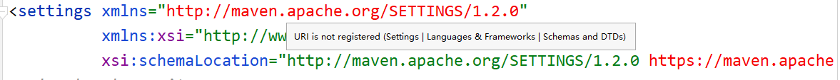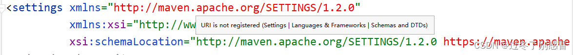 关于IDEA中settings.xml中URI is not registered (Settings | Languages Frameworks | Schemas and DTDs)的错误