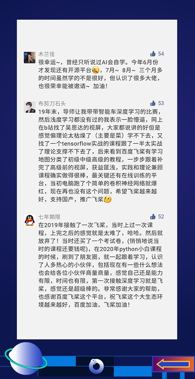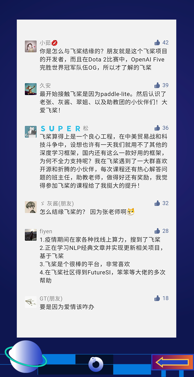 本次活动席位有限,仅少数开发者来到了现场交流。不过我们在线上也进行了留言活动,来看看大家对飞桨的告白吧。