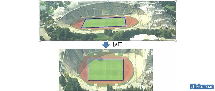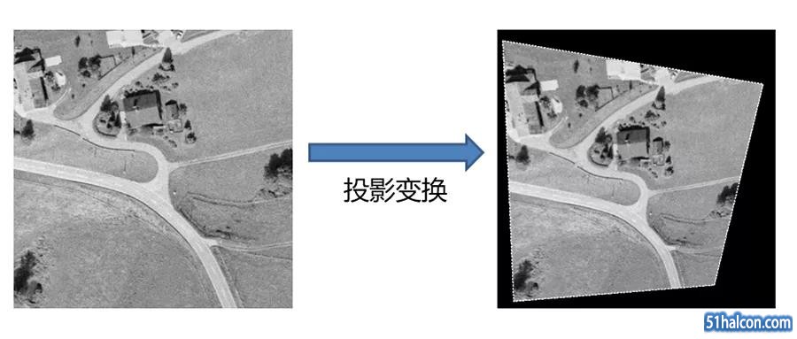 以下例子也是HALCON中典型的畸变校正示例,使用的正是投影变换。