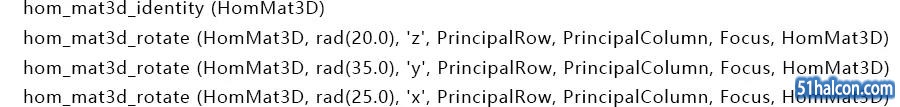 hom_mat3d_identity产生3x4矩阵,用于描述三维变换,实际上是4x4齐次变换矩阵(仿射变换);