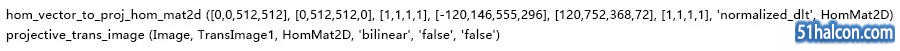 hom_vector_to_proj_hom_mat2d用给定点生成投影变换矩阵,输入点的坐标为三维齐次坐标,可以支持无穷远点和有限远点的变换;