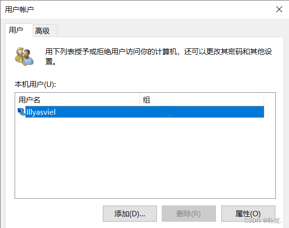 在用户账户中选择本机用户点开 “属性”