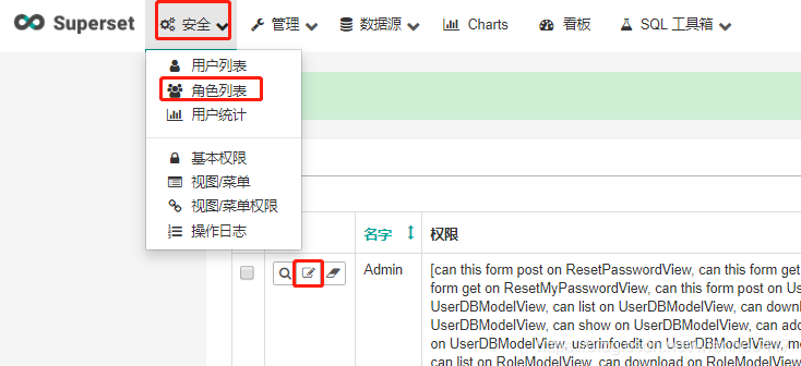 编辑角色,给admin角色赋刚刚添加的数据库权限: