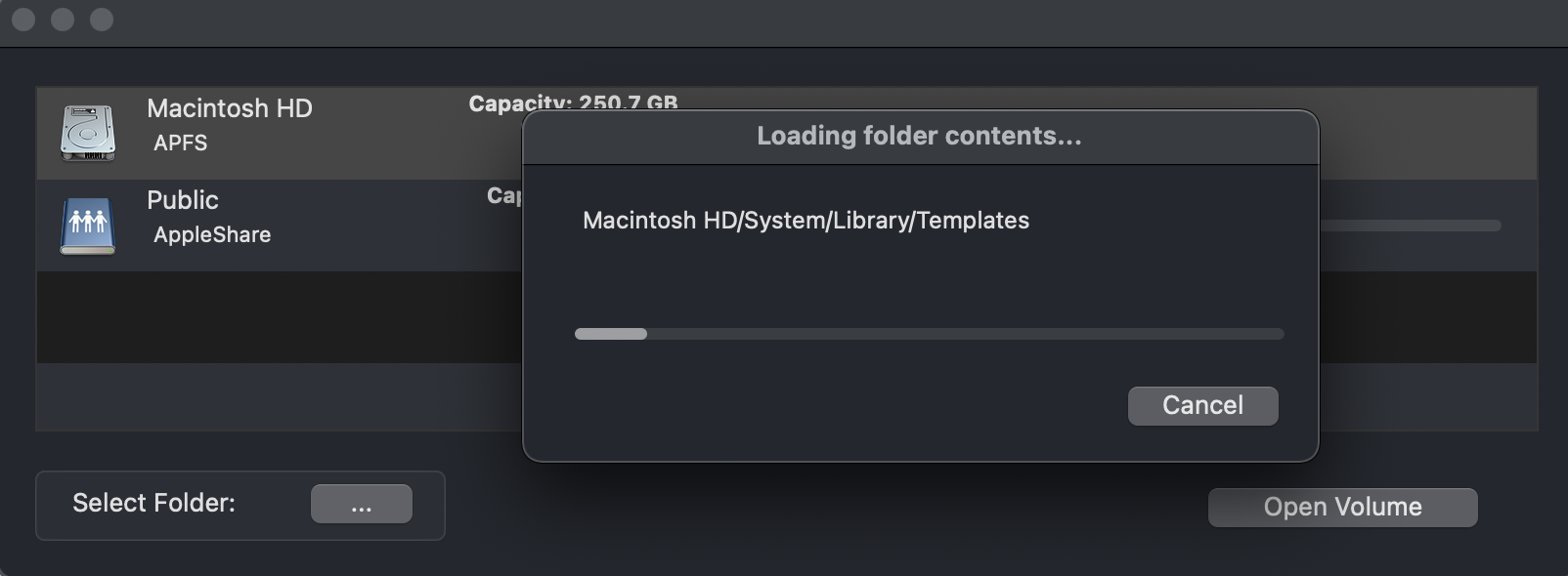磁盘选定后,打开Open Volume,会进行磁盘扫描分析