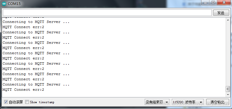 如果没有连接成功,则返回错误代码,如下图所示。常见的返回错误有MQTT_CONNECT_BAD_CLIENT_ID和MQTT_DISCONNECTED。