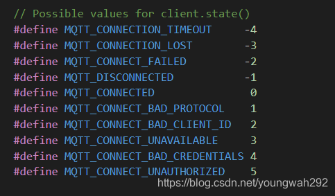 上图中的语句调用了PubSubClient的函数,如果成功,则返回0,也就是MQTT_CONNECTED,
