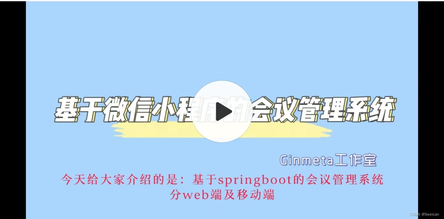 Hi,大家好,今天分享的项目是《基于微信小程序的会议预约管理系统》,该项目由小程序端+后台管理系统共同组成,可实现会议预约、审批、扫码签到、邮件通知、会议评价、会议日程管理等核心功能,提高会议效率,给会议人员带来方便。