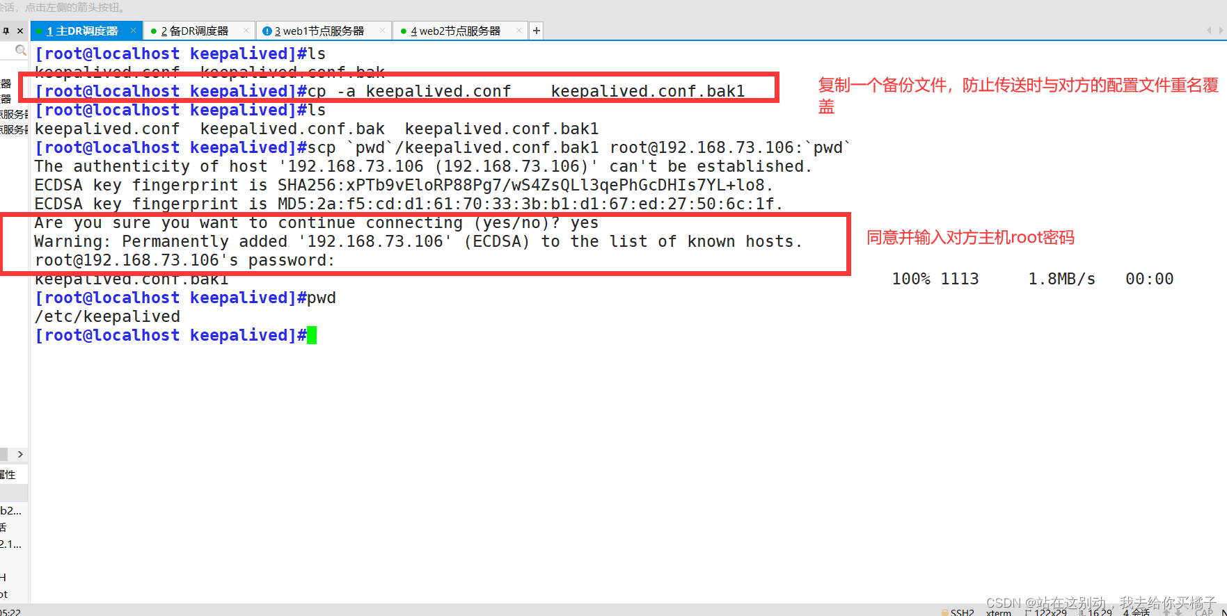 scp `pwd`/keepalived.conf.bak1 root@192.168.73.106:`pwd`