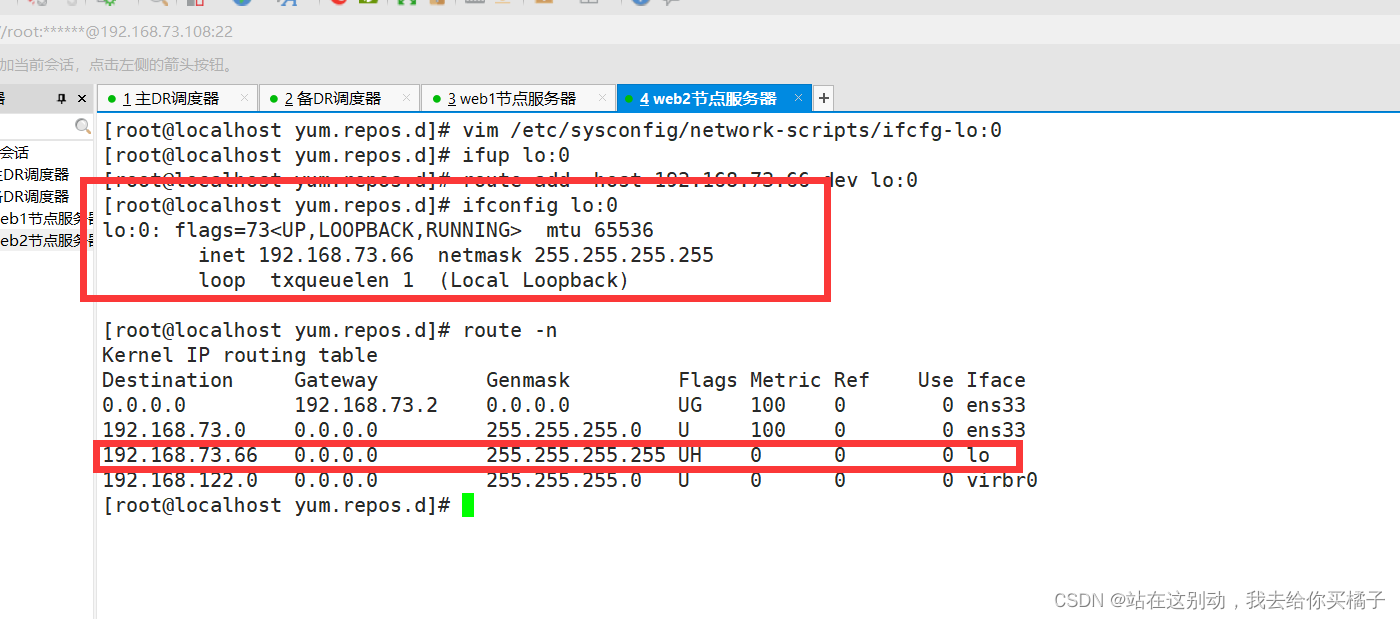 (2)添加虚拟网卡,与调度器不同,节点服务器设置的虚拟网卡为回环的虚拟网卡(lo:0),用于承载VIP,做自身数据处理