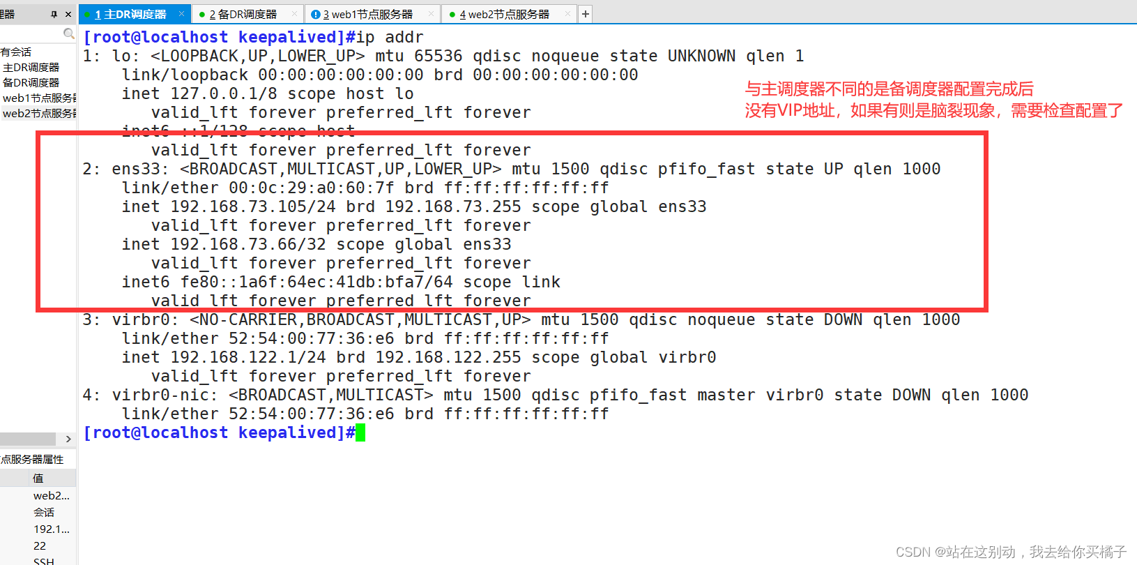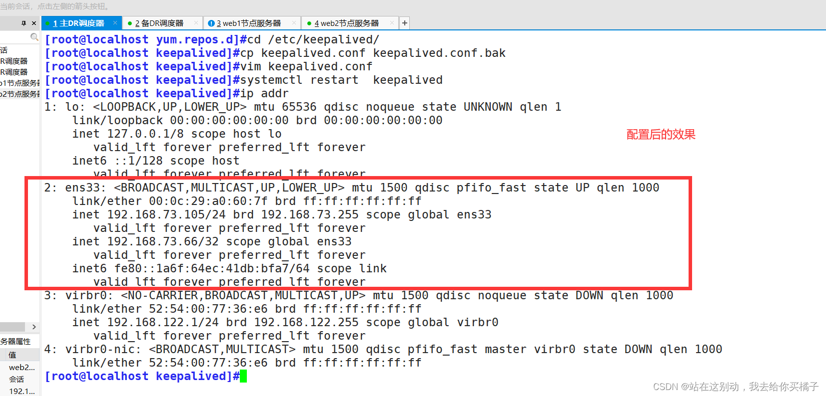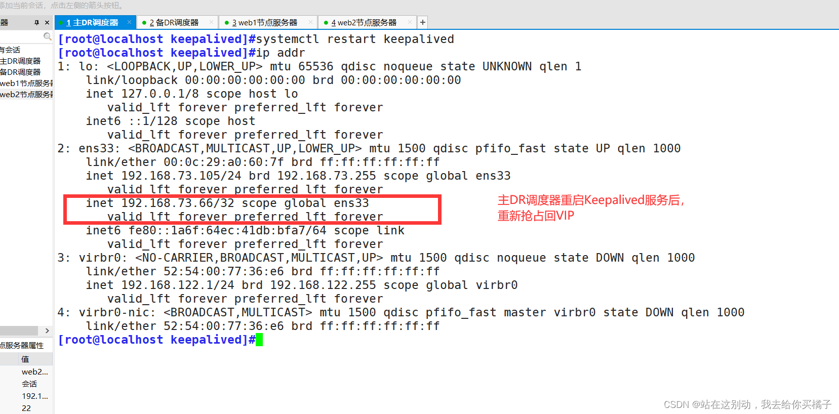 测试3:重新开启DR主调度器服务,测试主调器是否抢占VIP
