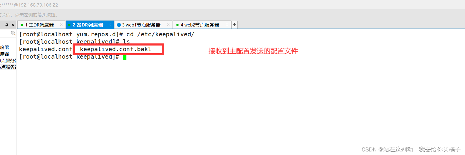 快捷方式配置:由于备DR调度器只要一些参数与主DR调度器不同,可以使用scp命令将该配置文件传输给备DR调度器