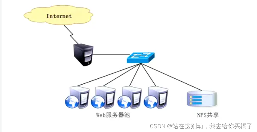 本次实验部署采用的时KeepAlived的运用与LVS中DR模式的结合,共同部署出高可用的负载均衡的集群。真实环境还会存在NFS共享目录服务器,考虑在上次的DR实验与NAT实验中都已经展示了NFS服务器与节点服务器之间的连接,本次若做也是相同的操作步骤,就省略了。