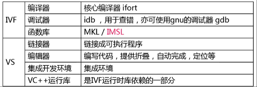 - VS只是集成开发环境,提供编辑器。实际编译和调试是调用IVF,链接是调用微软的link